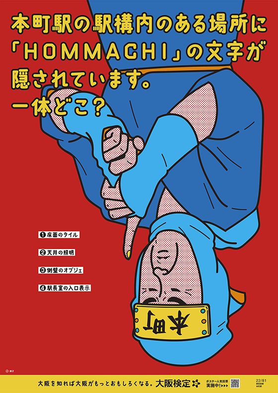 本町駅の駅構内のある場所に「HOMMACHI」の文字が隠されています。一体どこ?